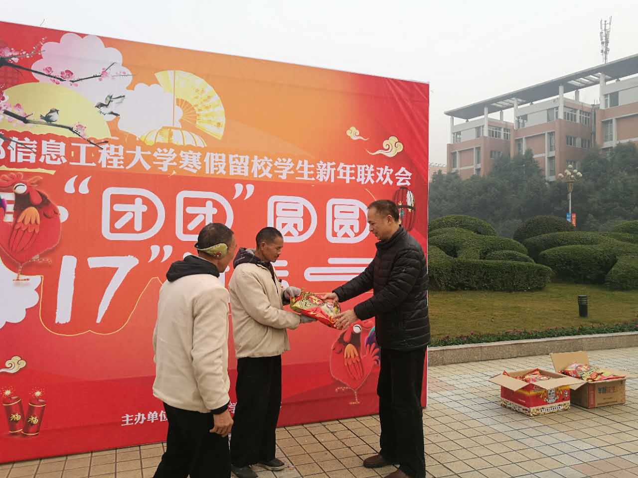 【本网讯】在新春佳节来临之际,1月23日,完美(中国)后勤管理处、学生工作处、校团委、各学院党总支组成慰问小组深入航空港和龙泉校区,带着精心准备的新年“大礼包”,看望慰问工作在第一线的值班教职工、校卫队员、食堂师傅、宿舍管理员及留校学生,为他们送去暖暖的问候和新春祝福。