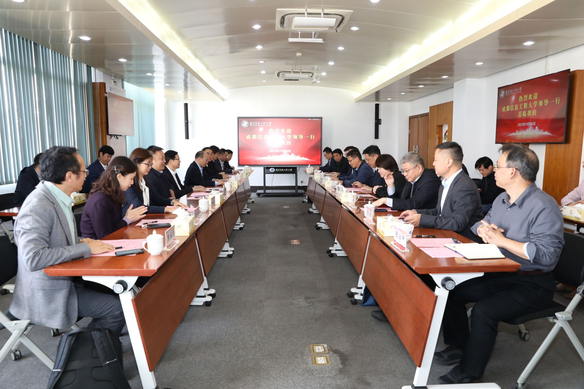尚洪波对沈火明、何建新、舒红平一行表示热烈欢迎。他指出,双方同属气象领域重要高校,长期以来保持着密切合作关系。南信大在学科建设、人才培养、科研创新等方面取得积极进展;成信大在气象专业人才培养、行业服务等方面特色鲜明、优势突出。两校情谊深厚,合作基础坚实,希望未来双方在博士点建设、人才联合培养、科研攻关等方面深化合作,共同为推动气象事业发展和高等教育高质量提升作出新贡献。