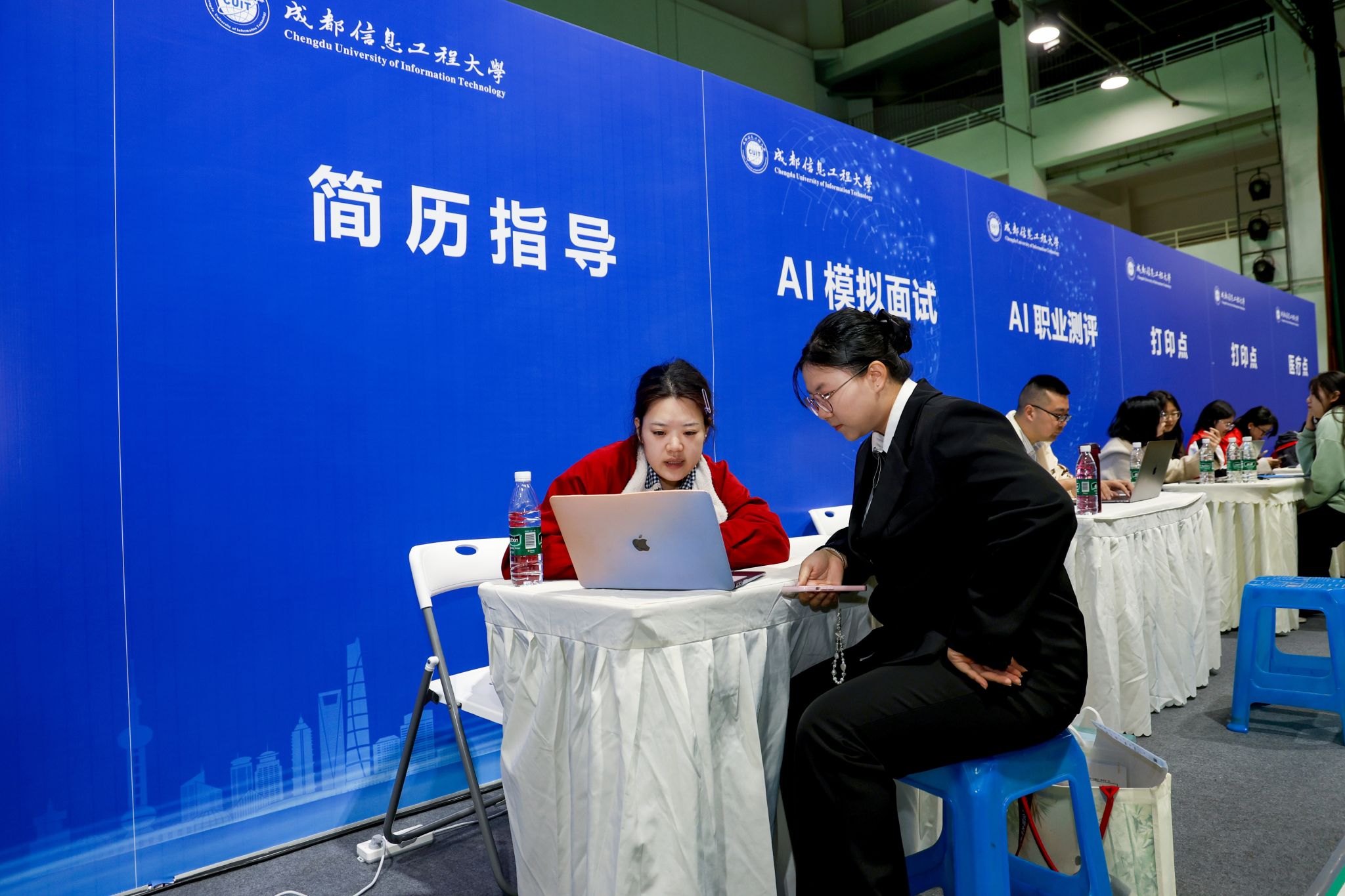 招聘会现场设置有服务咨询专区,涵盖简历指导、AI 模拟面试、AI 职业测评、打印服务、医疗服务等多元服务,为求职学子筑牢全方位应聘支持体系,为学生提供专业且贴合学生实际的个性化规划指导,帮助学生明确生涯目标。保障全方位、全过程、全覆盖的多元化就业服务,解决他们的后顾之忧。同时也为用人单位提供更优质的配套服务保障,有效降低了用人单位的招聘成本,提高了招聘效率,对快速选聘优秀人才发挥了积极的作用。
