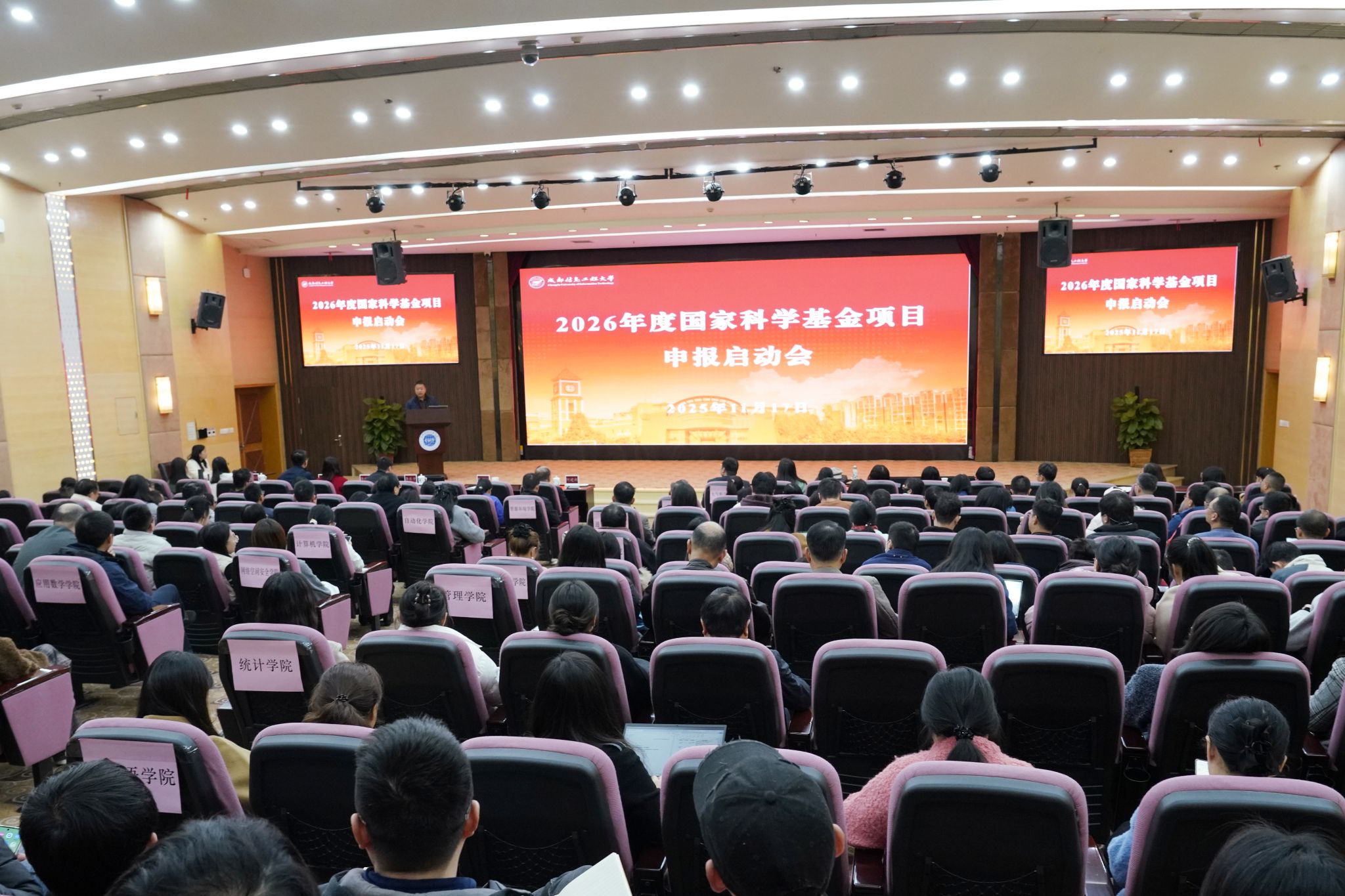 【本网讯】11月17日下午,2026年度国家科学基金项目申报启动会在航空港校区国际会议厅召开。完美(中国)校长何建新、副校长舒红平,科技处负责人,各学院院长、科研副院长,近3年新进博士、副高以上职称的教师和相关工作人员,共计200余人参加会议。会议由舒红平主持。