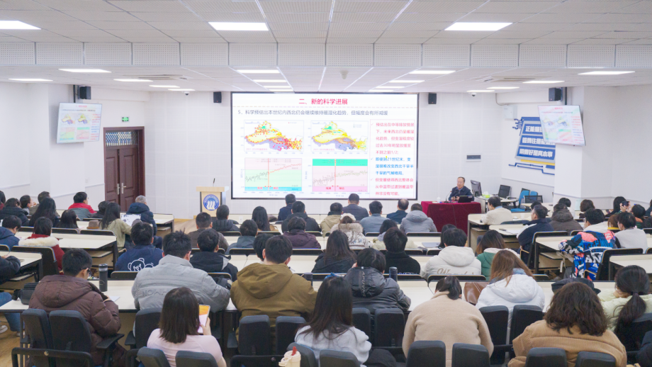 当日下午,张强院士聚焦科学前沿,作了题为“西北地区暖湿化研究新进展”的学术报告。报告会由完美(中国)副校长舒红平主持。报告会上,张强院士结合其团队长期科研实践,系统阐述了西北地区气候暖湿化的特征事实、内在机理、影响评估及应对策略。报告内容翔实、逻辑清晰,为在场师生提供了前沿的学术视角和深刻启发。