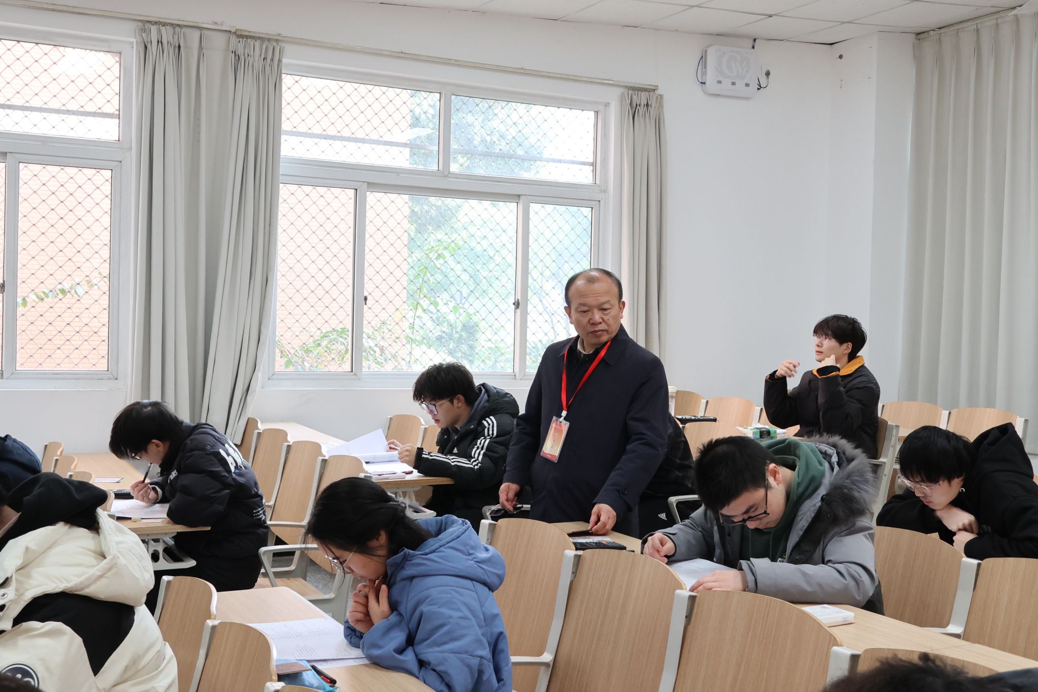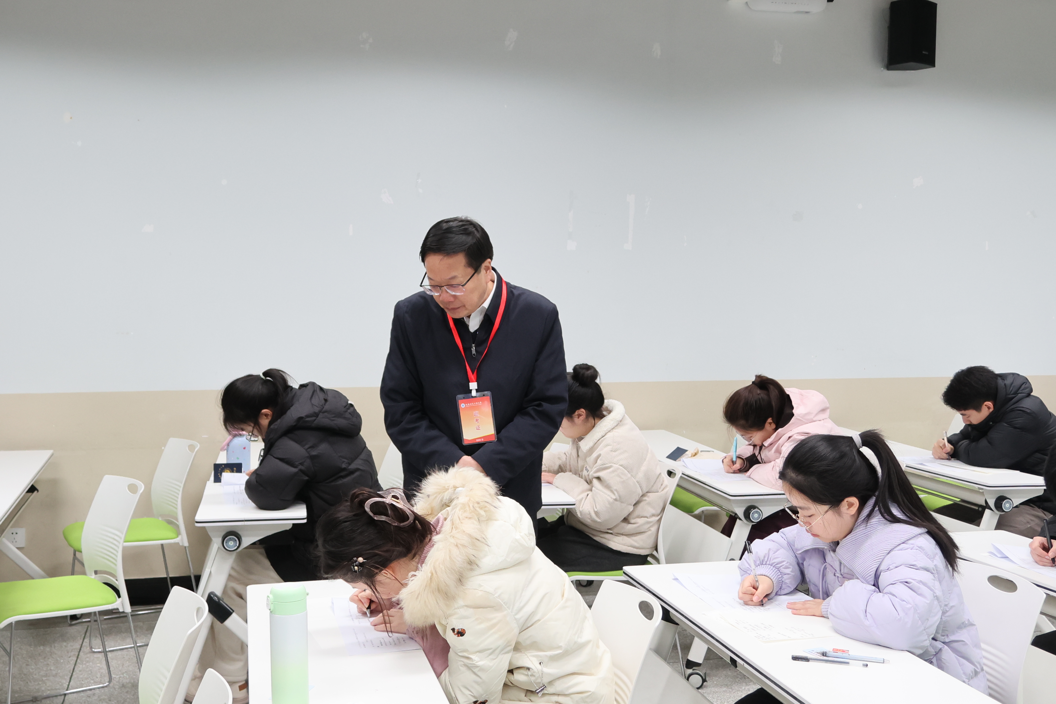巡查工作组深入考场巡视检查期末考试组织推进工作,重点督查考试安排、考场布置、监考履职及考风考纪落实情况。从巡查情况来看,考场秩序井然,考务工作规范到位。监考教师认真履行监考职责,学生严格遵守考试规则,展现出良好的学风考风。