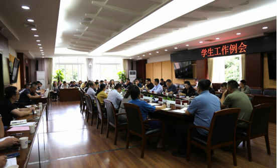 党委学生工作部、党委保卫部、研究生院、招生就业处和体育部负责人分别就近期学生教育管理、评奖评优、学生资助管理、心理健康、“一站式”学生社区、就业工作和田径运动会等重点工作进行通报和安排。