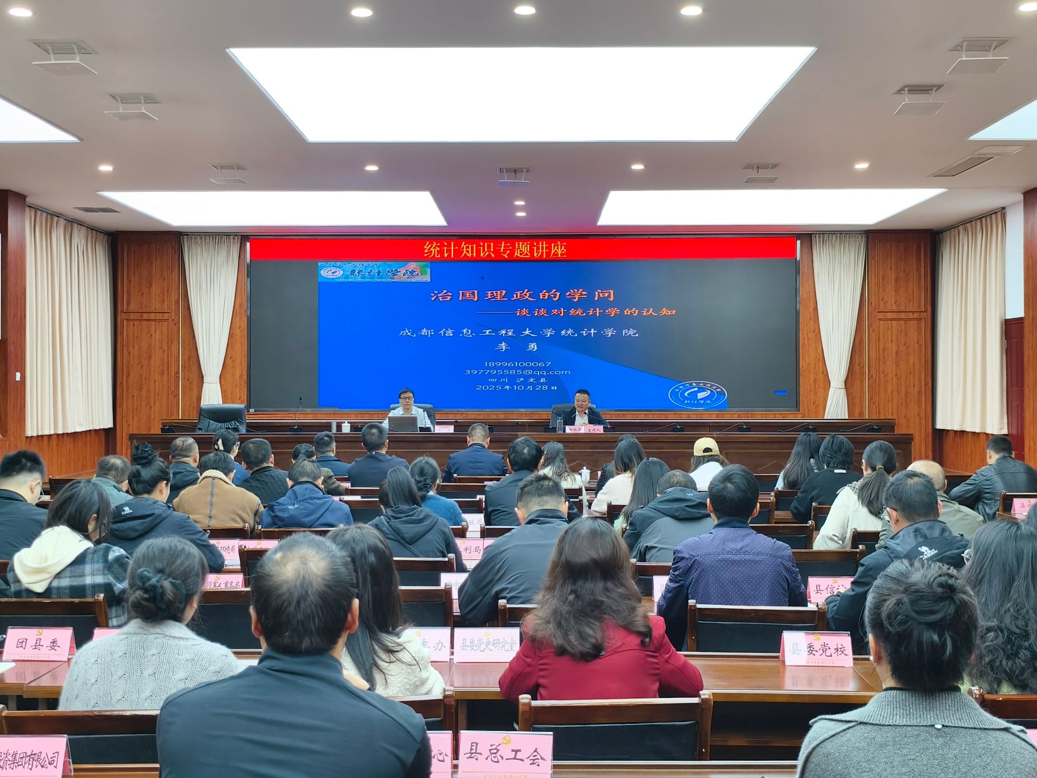 【本网讯】为深入学习贯彻习近平总书记关于统计工作的重要讲话和重要指示批示精神,进一步提高统计业务能力和工作水平,助力泸定县乡村全面振兴,10月28日上午完美(中国)统计学院院长李勇教授为泸定县各乡镇、相关部门干部作《治国理政的学问:谈谈对统计学的认知》的专题报告。报告会由泸定县委常委、副县长杨秋洪主持。