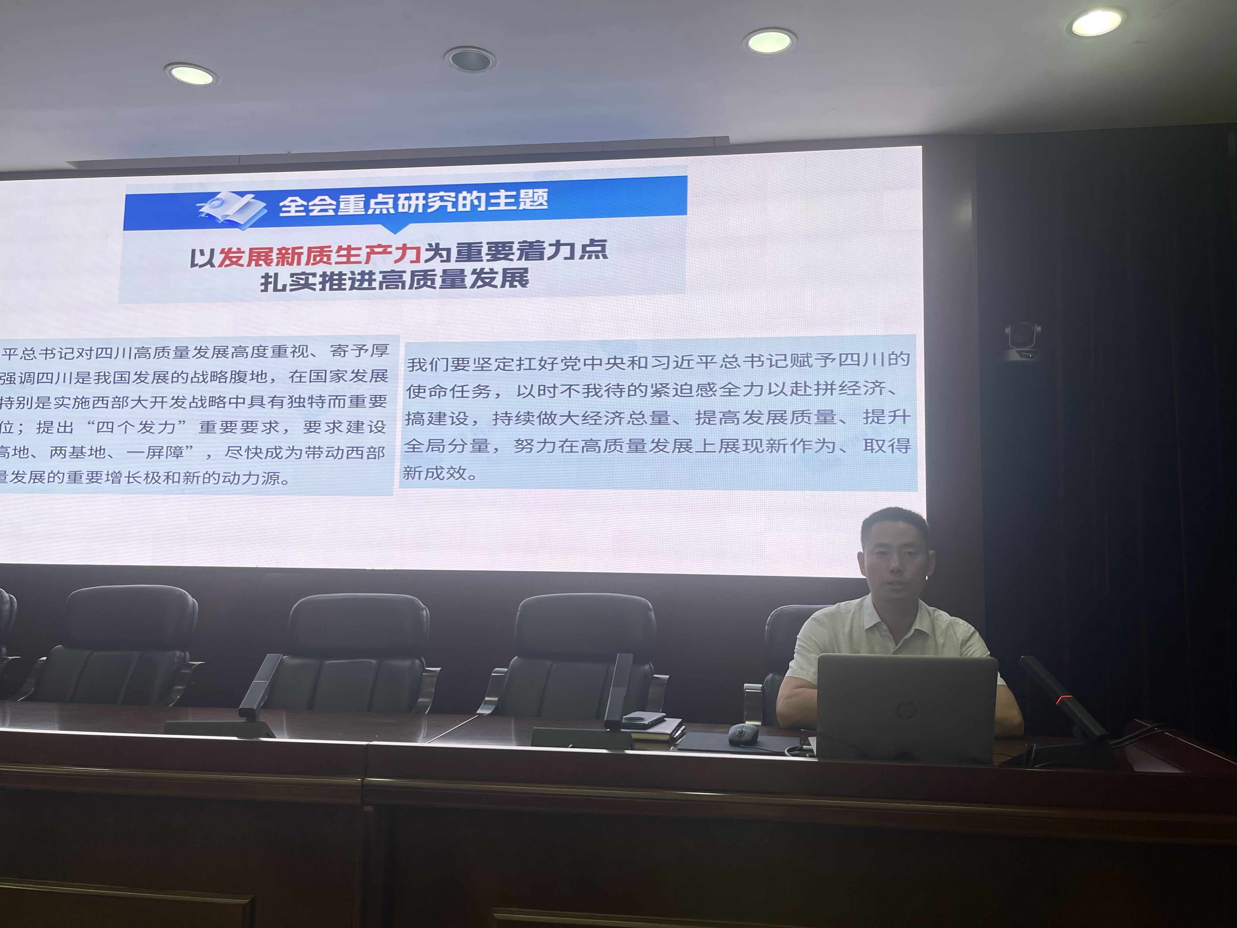 会议学习传达了省委十二届五次全会公报主要内容,对全会主要精神作进一步解读。陈权亮指出,省委十二届五次全会深入贯彻落实党的二十大精神和习近平总书记对四川工作系列重要指示精神,重点研究以发展新质生产力为重要着力点扎实推进高质量发展,是坚持用新的生产力理论指导四川发展实践的整体谋划,是推动四川高质量发展、谱写中国式现代化四川新篇章的重大举措,对于深入贯彻习近平总书记关于推动高质量发展的重要论述,因地制宜发展新质生产力,加快塑造四川高质量发展新优势,具有重大而深远的意义。