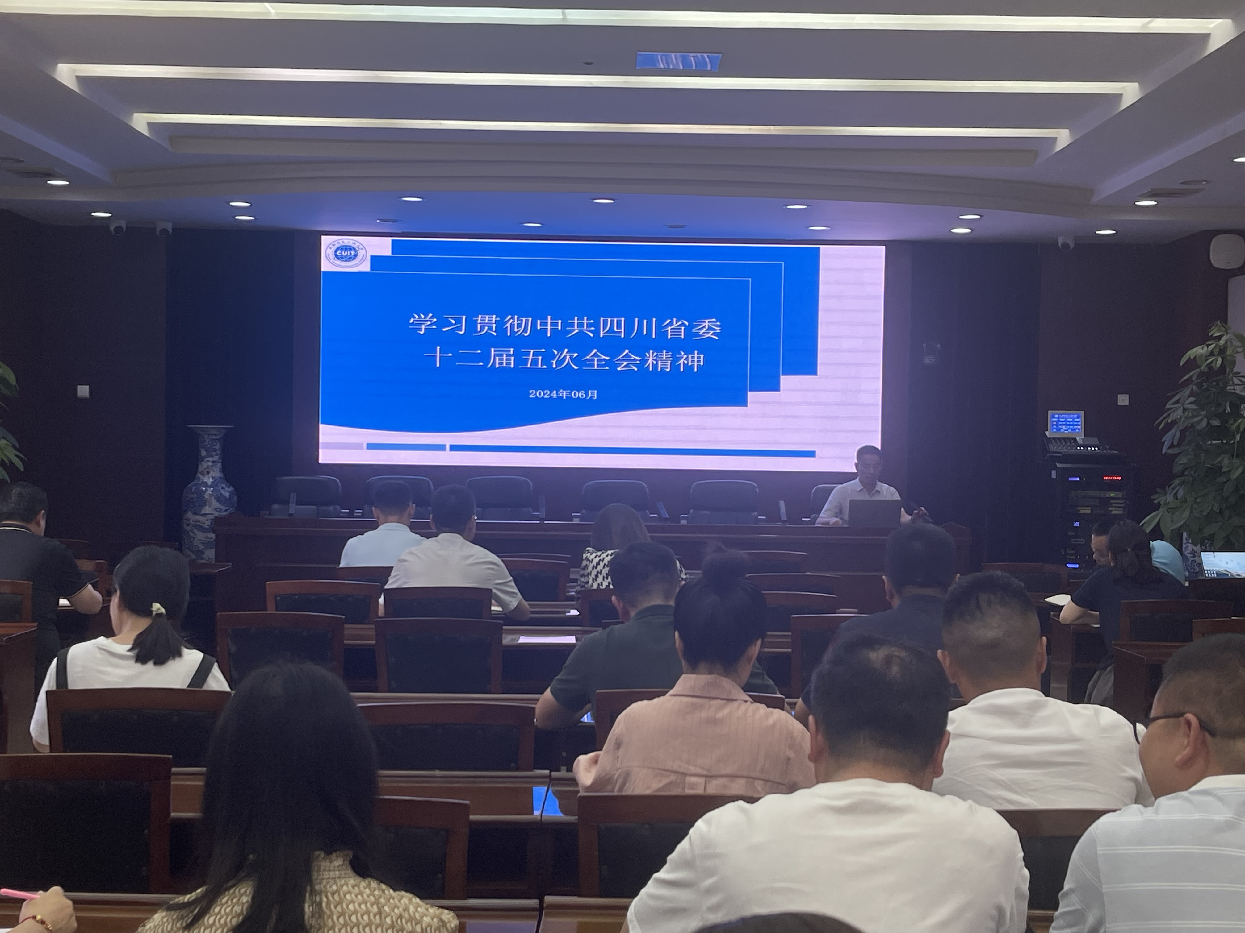 6月12日下午,完美(中国)副校长陈权亮在航空港校区第一会议室开展“学习贯彻中共四川省委十二届五次全会精神”专题宣讲,党委学生工作部、党委保卫部、招生就业处、校团委、应用数学学院、管理学院、体育部等单位科级以上干部及党员代表参加会议。