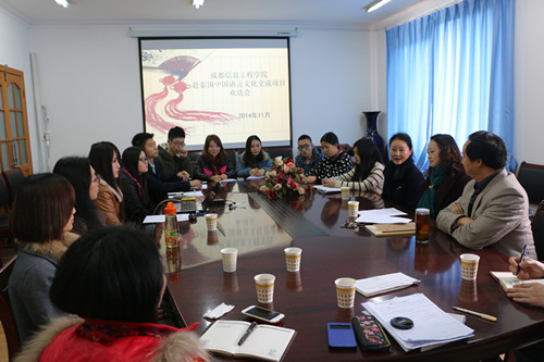 新闻背景:2014年9月,学院与泰国碧差汶省签订了《关于赴泰王国对外汉语教学志愿者项目协议书》,学院每年将派出学生到泰国碧差汶省的中小学教授中文。此次赴泰实习项目在学院领导的关心下,在国际合作交流处、教务处等职能部门的大力支持下顺利开展。参加项目的学生已接受了汉语教学、中华才艺等训练,也进行了教育软件的培训,将于11月19日赴泰开展为期四个月的对外汉语教学实习工作,在泰方安排的中小学教授中文、传播中华文化,并参与文化交流活动