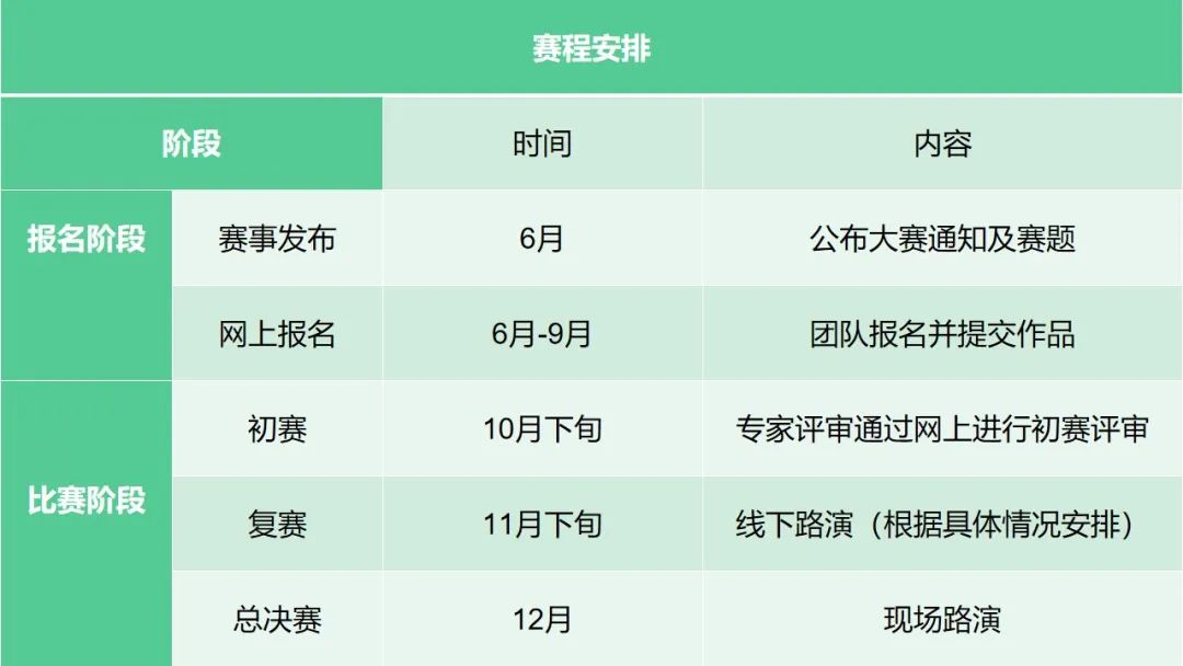 赛事分为报名、初赛评审、复赛与全国总决赛。