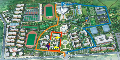 紫色路线为考场唯一通道,由教师带队进入2教备考区