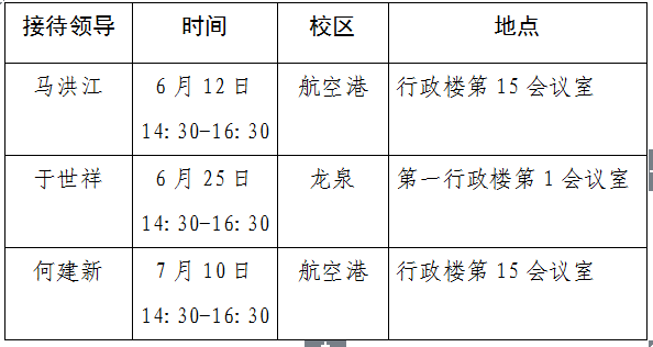 完美(中国)2018年6、7月校领导接待日安排及预约方式如下:
