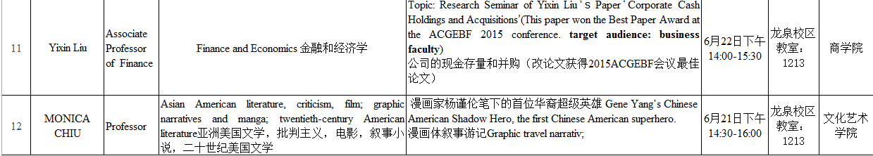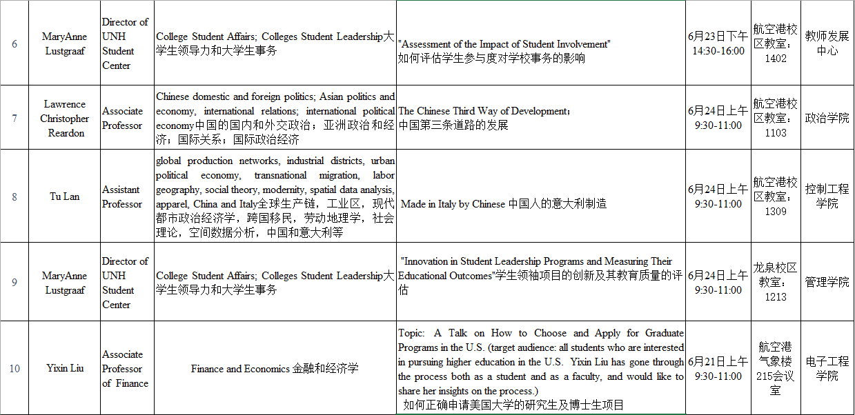 来自美国新罕布什尔大学的教授一行,将于6月20日至6月24日在完美官方在线入口开展12场讲座,时间和地点安排如下: