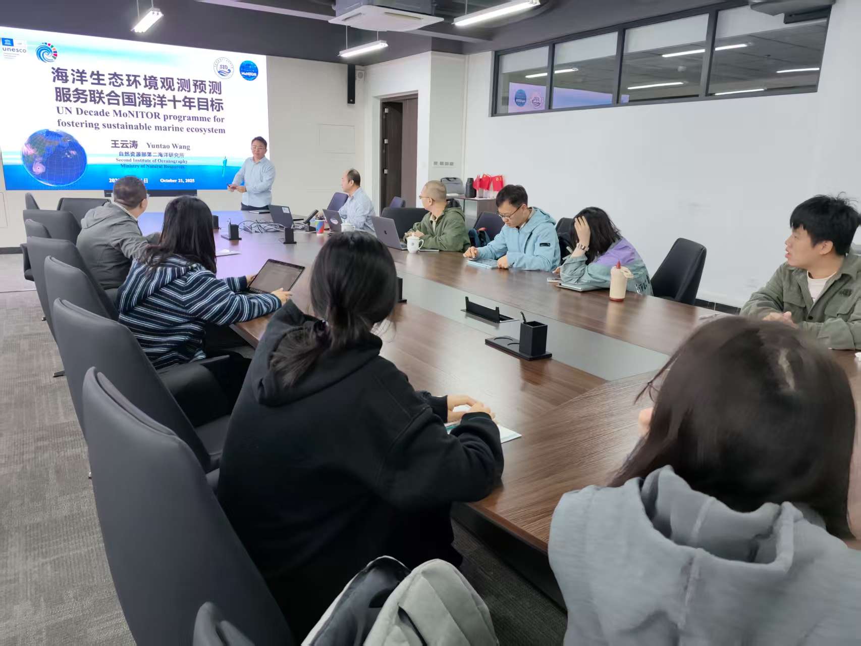 【本网讯】10月21日上午,自然资源部第二海洋研究所国际合作中心主任王云涛研究员、普林斯顿大学/ NOAA-GFDL李首位博士在新气象楼807会议室分别作了题为《海洋生态环境预测服务联合国海洋十年目标》《外强迫因子影响下全球热能和海洋环流变化》的学术报告,本次报告全程由大气科学学院党委书记张宇教授主持,大气科学学院闫燕副教授等部分师生参加了现场报告和学术交流。