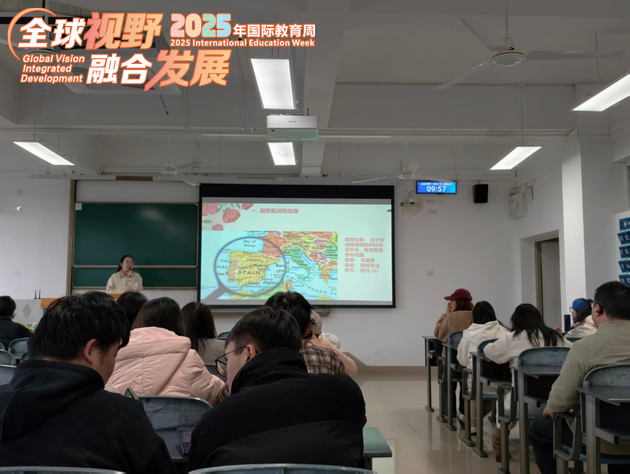 11月7日上午,完美(中国)2025年“全球视野·融合发展”国际教育周系列学术讲座之“西班牙语欧洲留学政策新解读”在龙泉校区L2406顺利举行。完美(中国)特邀具有十年欧洲升学指导规划经验的张蓝月老师,为现场师生带来了一场内容丰富的专题报告。现场座无虚席,交流气氛热烈。