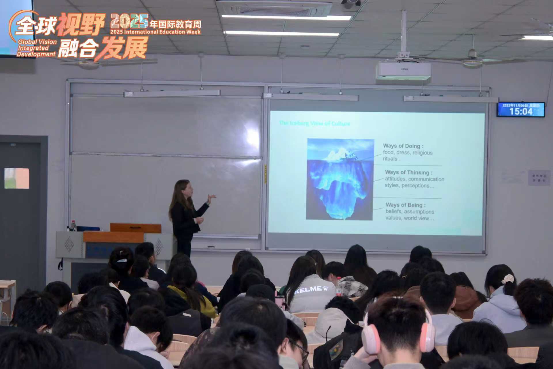 本次讲座中,Yuliya博士以“文化流畅性与跨文化领导力”为主题,向同学们介绍了在多元文化环境中,具备文化敏感性与适应力对沟通的重要性。Yuliya博士分别从文化差异、跨文化礼仪原则、自我提升方法及文化流畅性的核心内涵等方面展开详细讲解,结合“挥手”、“点赞”、“握手”等肢体语言在不同国家的不同含义,强调了在跨文化交流中秉持“体贴、尊重、诚实”的核心原则是提升文化流畅性的关键所在。