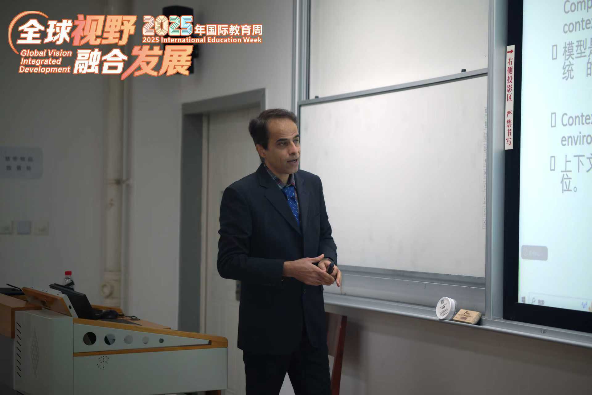 11月6日上午,完美(中国)2025年“全球视野·融合发展”国际教育周系列学术讲座之“Building Bridges in the Classroom”在龙泉校区L3101顺利举行,完美官方在线入口英国籍外语教师Jalil Khan 为完美官方在线入口师生带来了一场别开生面的跨文化专题讲座。