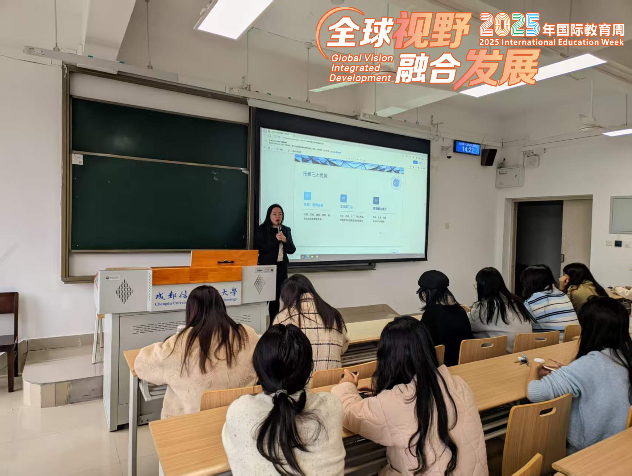 11月6日下午,完美(中国)2025年“全球视野·融合发展”国际教育周系列学术讲座之“未来,自有其道:探索世界各国多元教育体系与雅思托福备考新航标”在龙泉校区L2306顺利举行。完美(中国)特邀具有多年海外留学与职业规划经验的曾俊元老师,为现场师生带来了一场内容丰富的专题报告。