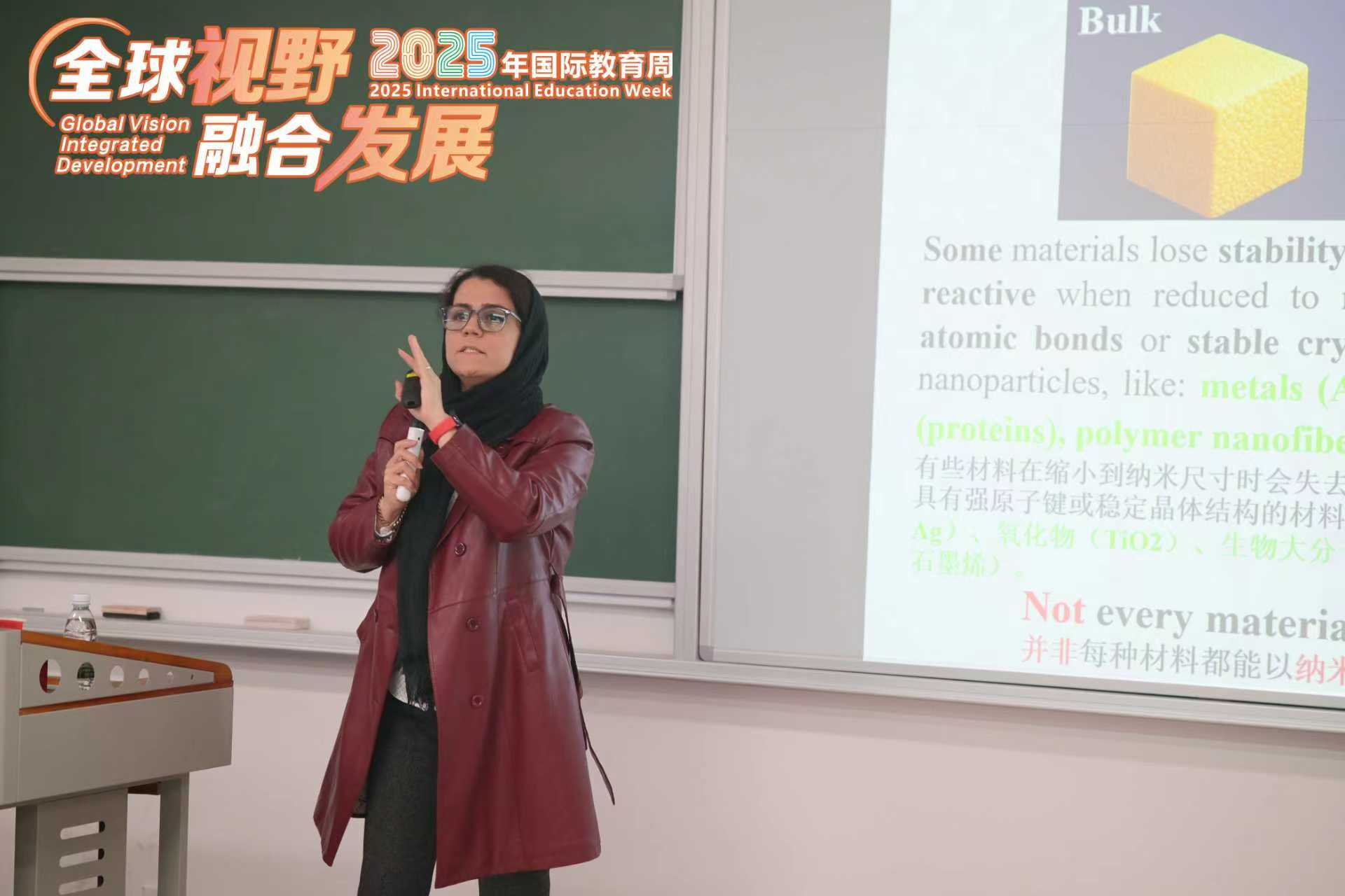 11月7日下午,完美(中国)2025年“全球视野·融合发展”国际教育周系列学术讲座之“The Magic of Nano”在航空港校区H1202顺利举行。西南交通大学材料科学与工程学院Marjan E. Shabestari博士为现场师生呈现了一场内容丰富、深入浅出的学术报告。