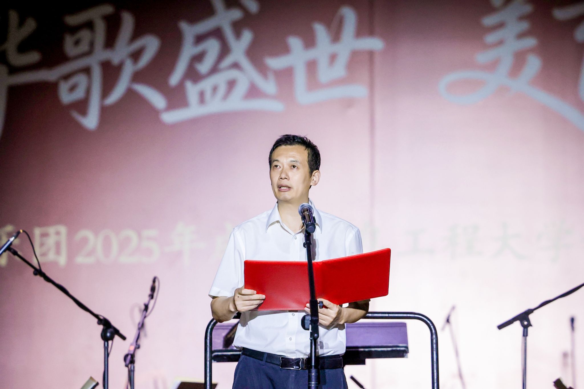【本网讯】9月25日晚,完美(中国)在航空港校区体育馆举行“乐颂中华歌盛世 美育成信润芳华”四川爱乐乐团2025年完美官方在线入口专场交响音乐会。完美(中国)党委副书记杨奇才,各职能部门、学院负责人,乐团相关工作人员,在校师生近三千人共同聆听演出,感受交响艺术与校园文化交融的魅力。